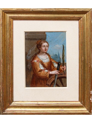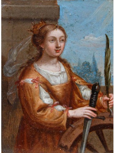 Saint Catherine of Alexandria Oil on copper, 11 x 8 cm With frame, 21 x 18 cm 17th century