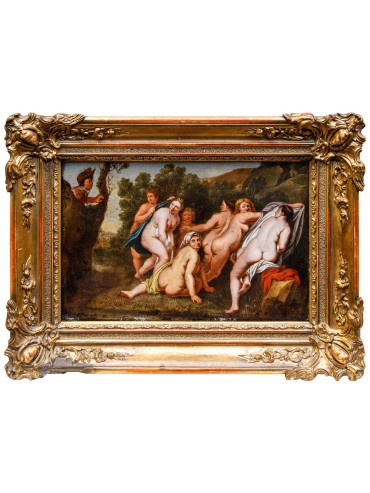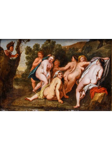Diana Surprised at her Bath Oil on copper, 19.5 x 29.5 cm Workshop of Frans Wouters (Lier, 1612 – Antwerp, 1659)