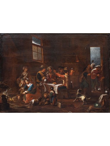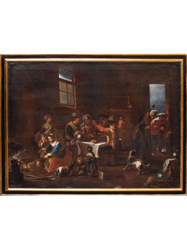 Interior scene Oil on canvas, cm 95 x 134 With frame cm 122 x 160 Dirk Helmbreker (Haarlem, 1633 - Rome, 1699), attr.