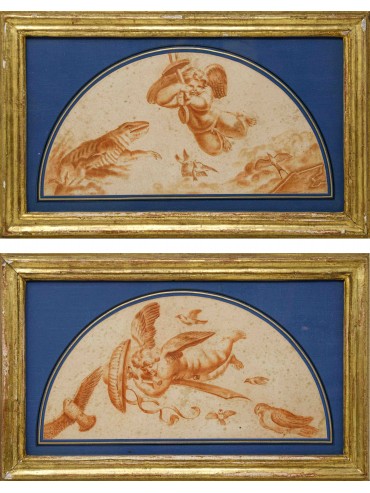 Lunettes with angels and animals (2) Sanguigna on paper, cm 34 x 17 19th century