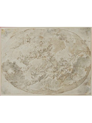 Studio for ceiling Pen and watercolor, 20 x 26.5 cm With frame, cm 39,5 x 47 Venetian school, 18th century