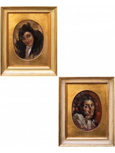 Portraits of women (2) Oil on board oval cm 37 x 28.5 cm Frame, cm 40.5 x 31 19th century