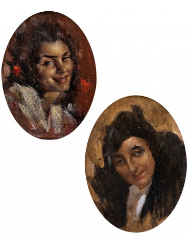 (2) Oil on board oval cm 37 x 28.5 cm