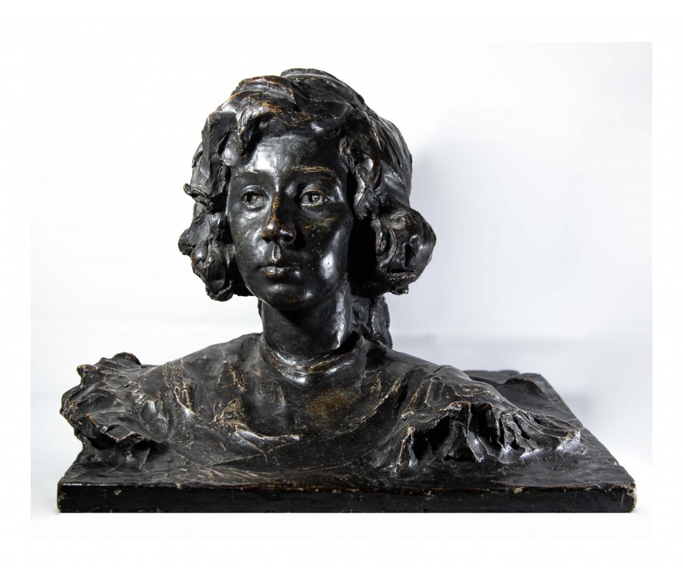 In the analysed sculpture, the recovery of an intense color that creates the shapes by approximation is clearly visible, with a suggestive play of lights and shadows. The process of tempering the form is implemented through material dissolvenze that abolish the contours and the drawing, comparable with the evanescent painting of Cremona and the sensual and intimistic luminism of Daniele Ranzoni, the two major exponents of Scapigliatura pittorica.