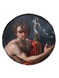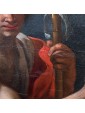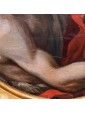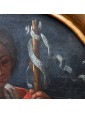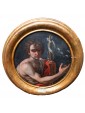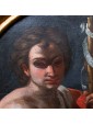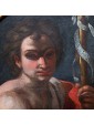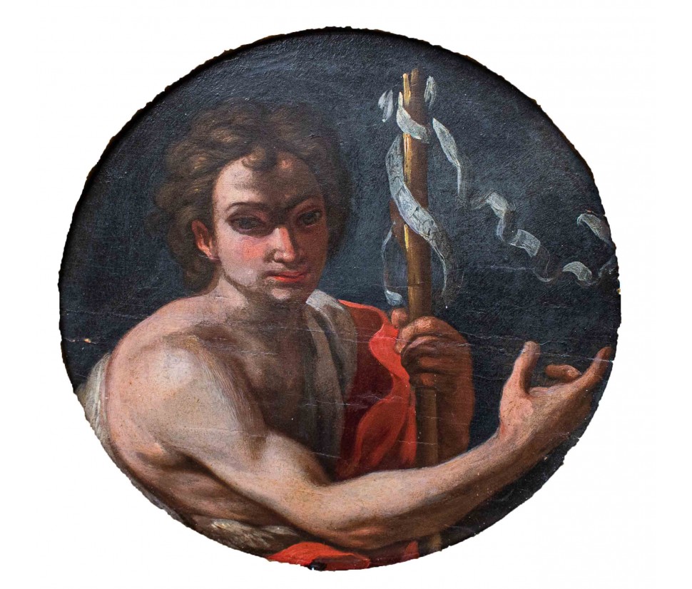 In this small round-format canvas, Saint John the Baptist is depicted half-bust with his typical infant iconography, dressed in poor clothes made of leather and a scarlet coat. The young man looks at us pointing to the stick on which is knotted the traditional inscription: "Ecce Agnus Dei", the phrase pronounced when he saw Jesus for the first time. The iconography of the Young John the Baptist in the desert, often accompanied by a Lamb, was born in post-Trident times resulting from the invention of the artists of the Italian Renaissance of the episode of Saint Giovannino and Jesus child playing together. The gesture of the arm reaching with the finger upwards serves to indicate the one who must be followed, that is, the Christ.