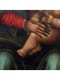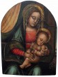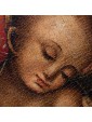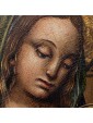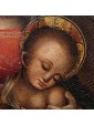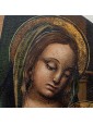 The delicacy of the subject fully expresses the sweetness of this painter at the level of intimacy that he manages to reach with the observer, in search of a deep meaning capable of going beyond the pictorial matter: the just reclining looks, the closed eyes of the Child and half-closed of the Virgin and tender gestures participate in this search. The interesting panoramic view, although limited to a small space, manages to expand the dimensions of the table towards an indefinite horizon, with a taste for the landscape of clear Leonardo da Vinci influence, treated with thin blue velvets.The pictorial quality of this table is fully expressed in the delicate passages of light and shadow and in the refined transparency, in the elegant gold profiles and in the use of a palette of enamelled, bright and saturated colors.