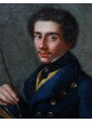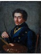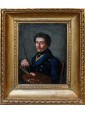 The canvas in question shows a splendid example of self-portrait of Lombard origin, referring to the very first half of the nineteenth century. The painting in question is probably the painter himself, who decides to depict himself in the middle of a bust, sitting on a chair, with the tools of his work, or brushes and the wooden palette with various shades of color. The figure emerges clearly from a neutral background of grayish color, which accentuates the three-dimensionality and concreteness.