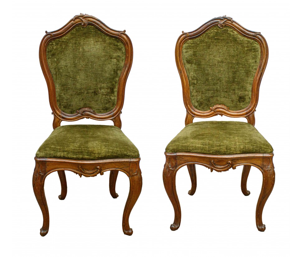 (2) Walnut and green fabric, cm 105 X 51 X 44
