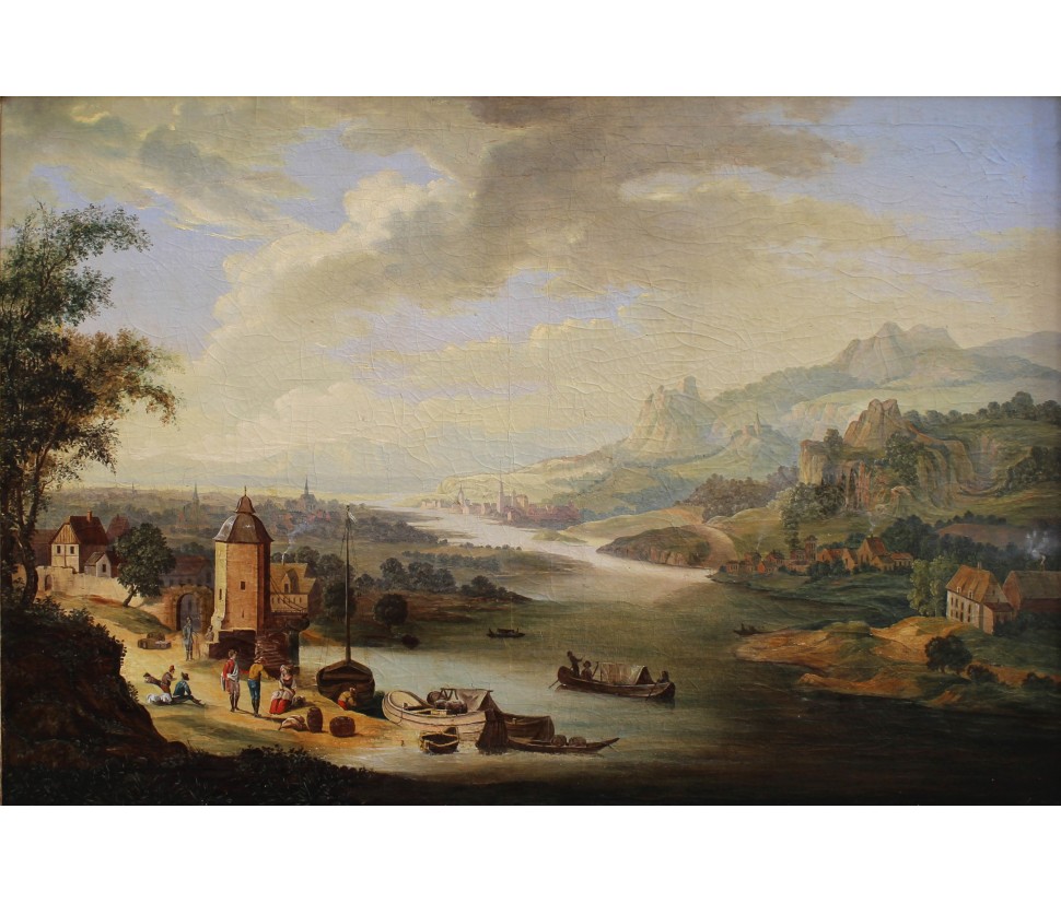 A landscape is painted along the course of a placid river. The painter’s hand skilfully delineates the curves of the river surrounded by a flourishing hilly landscape. The buildings and the small villages fade in the distance gently leaving the imagination open towards what is not seen.