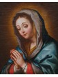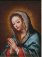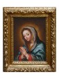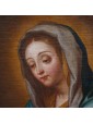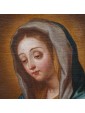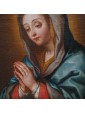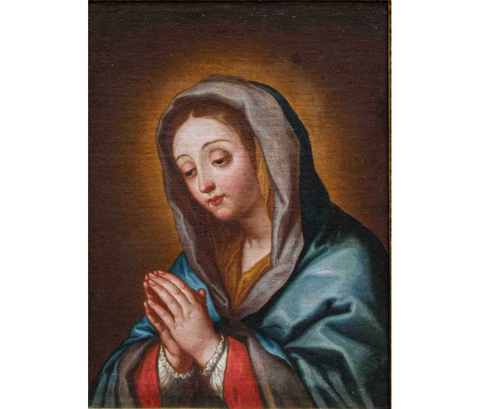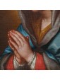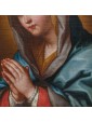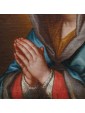 The present canvas is distinguished by the gentle compositional sweetness that is observed by the look, barely veiled by the shadow of the eyelids, absorbed in the mystical rite and hands joined in prayer that emerge from a petticoat in white lace, symbol of purity that identifies the Virgin.