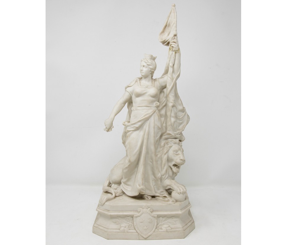The bisquit sculpture analyzed represents the figure of Mother Svea (in Swedish Moder Svea), a national personification of Sweden. Svea is a feminine proper name that comes from an ancient genitive plural meaning of the svear, Germanic people who occupied Scandinavia. It is also used in the coronimo Svea rike, meaning "Kingdom of the Swabians", from which comes Sverige, the Swedish name of Sweden.