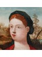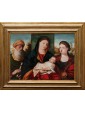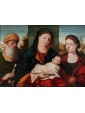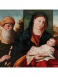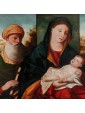 The Madonna with Child and Saints Simeon and Catherine proposed here refers to undoubted influences of Bellini. The figures are shot in the middle of the bust and crowd the space of the table that opens on a landscape background, only interrupted by a central panel against which stands the figure of the Virgin.