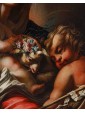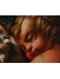 The painting enucleates the main characteristic features of the triumphant Genoese school. While it is possible to understand a luminism at Valerio Castello (1642-1659), on the other hand the typical formalism of Giovanni Battista Paggi is softened in the containment of emotions, manifested with a real modesty by those present. It is possible to compare, except for the backgrounds built by Paggi, the little faces of children, as happens in the Cupid of Rinaldo and Armida and in Jesus and in the angels of the Mystical Wedding of Saint Catherine or in the Madonna and Child, Saint John and Saint Stephen receiving the palm of martyrdom, all in private collection. Bartolomeo Guidobono (1654-1709) will collect this tradition, by lightening the rendering of his paintings, caressed by a darkness equal to the present, which delicately brings out the characters' incarnations: this is how it happens in the Maga in private collection.