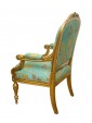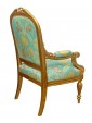 The armchairs of this period were characterized by the wide and comfortable seat, for the simple and straight shapes, with regular shaped backs (oval, rectangular, shield or medallion). The backrests, in this case padded and decorated with a precious fabric finely embroidered with phytophorus motifs, were designed to accommodate the guest and support him in a comfortable way, objective to which also contributed the positioning of the armrests, also padded.