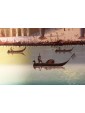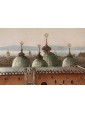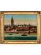 Around the Piazzetta San Marco, cheerfully populated, are the famous Venetian treasures: in the foreground the columns of Saint Todaro (Teodoro di Amasea, Byzantine) and Saint Mark; on the left, The Sansovinian Library. It is then the turn of the Bell Tower with the precious loggia del Sansovino, the Procuratie Vecchie and the principle of the Clock Tower attached to them.