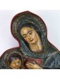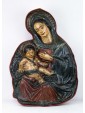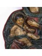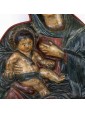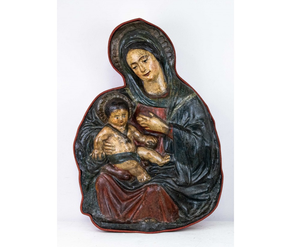 The present Madonna is trying to breastfeed the Child, thus qualifying as Virgo lactans. The gentle inclination of the face of the Virgin, tenderly turned to the vision of Son, generates an optical convexity that allows you to appreciate the entire sculpture as if it were enclosed in an oval. The wise use of polychromy, alternating mainly in warm and dark colours, contributes to characterise this sculpture with a deep expressiveness.