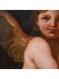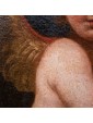 The particular pink base, given to the specific amber skin of the child, allows us to recognize an executive area in Emilia, stressed, in old age, from the happy parable of Felice Fortunato Biggi (1680-1750), which reproposed a similar Putto with flowers, now in private collection bresciana, in full XVIII century, to witness the territorial appreciation of the subject. Simone Cantarini (1612-1648) through technical virtuosity reproposes the same softness of incarnate in the figure of Jesus with the painting Madonna and Child and San Carlo, now preserved at the Pallavicini Gallery in Rome; defined by Luigi Lanzi "Wide estimator of himself, sprezzator of every other", the artist became in a short time the most capable student of Guido Reni, importing the Emilian way in the Marche. Evident assonances of style are also ascribable to the work of Carlo Cignani (1628-1719), other Bolognese, in particular in the Cortina Castles of San Michele leads to victory the Sipontini and the Apparition di San Michele frescoed in the Bolognese church of San Michele in Bosco.