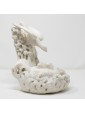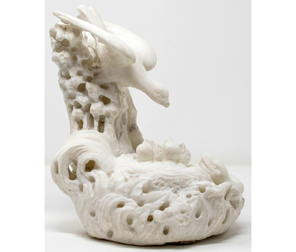 The plastic quality of alabaster, a preferred material for the restitution of soft-modelled transparencies, has guaranteed its fame in the art field over the centuries. Rock made up of sediments of evaporated mineral salts, alabaster is made up of a fabric of aggregate mineral concretions, They are dug out in the form of eggs, which are then shaped and carved as desired.