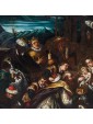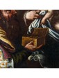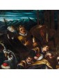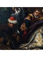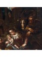 The meeting between the three kings and the child Jesus is staged here at dusk, whose dim light barely illuminates the figures creating strong contrasts between light and shadow. On the right you can see the hut that gave shelter to the Holy Family, from which a young man leans to be able to observe the scene.