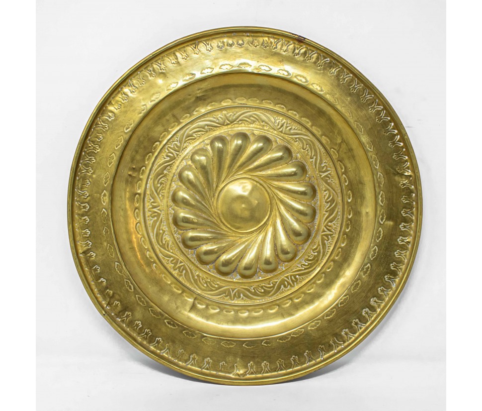 The alms plate, properly called "alms plate", is a container usually decorated in the form of a large bacille or plate for the collection of offerings for the Church; generally made of metal such as bronze, brass, silver and gold. Constant is the presence of central decorations fitomorph or girandola or with subjects taken from the bible, can also present in the center a support to fix an iconographic element (a statuette) or even a candle holder or compartments for the subdivision of alms.