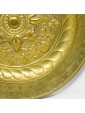 The almoner plate examined, in brass, has a series of concentric surfaces decorated with plant motifs and in the center a right-hand winder, decoration that can be found in many examples, including the one painted in the Apparition di Gregorio Magno a Santa Fina by Domenico Ghirlandaio in the collegiate church of San Giminiano.