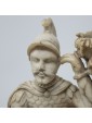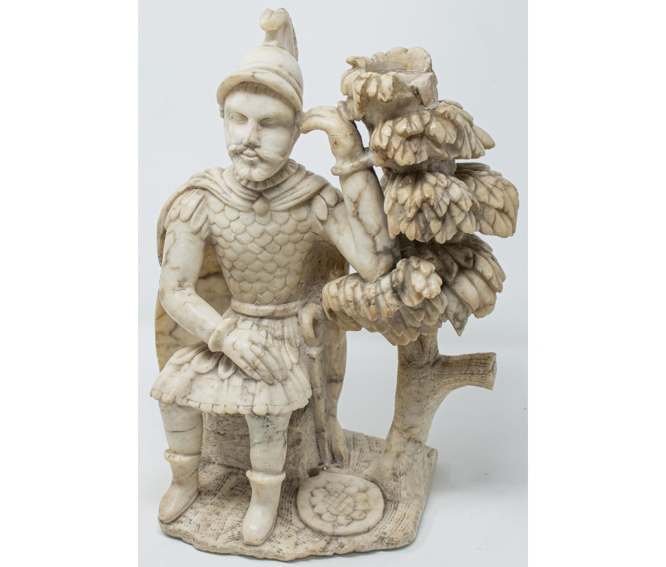 The marble sculpture is finely carved by hand, expert in rendering details such as the soldier’s armor, but also the olive tree canopy on which it is laid, as well as the robust bark of the tree.