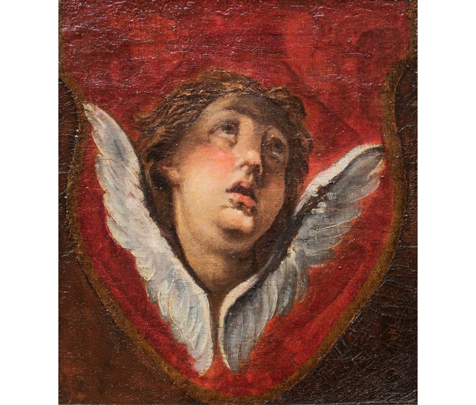 The delicate putto head offered here, in which a cherub is recognizable by the happy iconographic solution of the wings placed under the face of the angel, is depicted with vigorous vitalism. A sharp point of view illuminates its face in a shimmering way, scanning its features with strong shadows and with a youthful redness that makes the cheeks orange. The veristic perfection with which the artist arranges his semblance is of wonderful expressiveness. The eyes are swollen with intensity, and they denote together with the general setting of the head a conscious reflection on the physiognomy, peculiar within the emerging context of Venetian painting. The painting in question is influenced by the wide-ranging productions, both monumental and prospective, then in vogue in the territory of the Serenissima. Conceived by a view from below, the portrait evokes from the Venetian rococo that particular predilection for the open and clear, airy ways, denounced in the first beat by Tiepolo. The conscious detachment from the pure decorativism and the repeated Cortonese paginative solutions then in vogue allow to combine the present with the production of Francesco Fontebasso, who with Gaspare Diziani had initiated a happy renewal of Venetian painting, through a definitive reflection on the ways now established, even genially, by Ricci, Pellegrini and Tiepolo. Fontebasso, born in 1707, died a year after the Canaletto (1769); from the faith continually oscillating between the Ricci, of which he was first pupil, and the Tiepolo, Fontebasso was part of the so-called "travelling artists", which through the continuous wandering between towns and courts of northern Italy and Europe, allowed the widespread spread of Venetian styles, ensuring a refound preminence. While keeping faithful to the master’s lesson, Fontebasso received a vital impulse from the figural elegance promoted by the Academy of San Luca Romano, when he arrived in the capital in 1728; he then went to Bologna, the artist collected the warm classical and sometimes quadrature congerie, Emilian species, and returned to his native Venice. Here he obtained an important commission from Sebastiano Uccelli for the fresco of Ca' Zenobio, near Treviso; then followed the impetuous figures for the Manins in the first chapel of the villa of Passariano (1732) and for the Jesuits of the Church of the Jesuits, with the scenes of Elijah being taken away to heaven and The angels appear to Abraham, of clear tiepolesca memory. In a crescendo of commissions, the artist dedicated himself from 1759, in the city of Trento, to the realization of nineteen canvases related to the Old and New Testament for the Great Hall of the refettorio del Buon Consiglio; the artistic apotheosis reached him later, thanks to the urgent request for his works by major Venetian families: Duodo, Bernardi, Boldù, Barbarigo, Contarini. The artist reached the tsarist Saint Petersburg in 1761, to decorate the ceiling of the church of the Winter Palace.