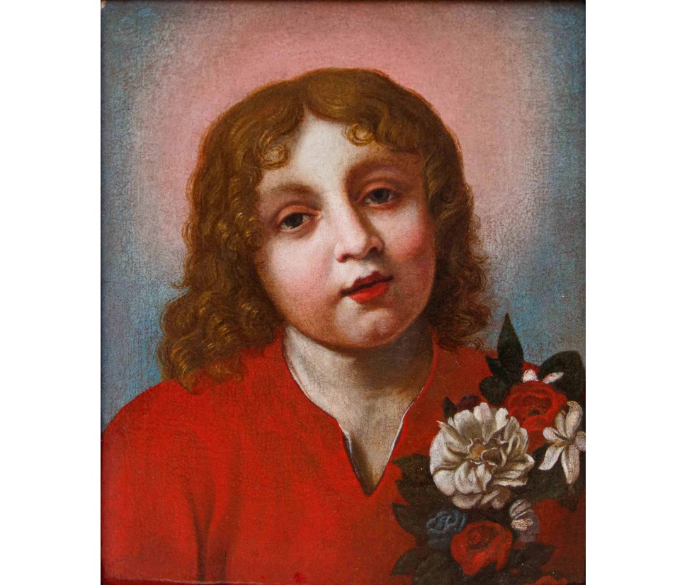 This Jesus Child with a bouquet of flowers is based on a famous composition by the master of Marinari, Carlo Dolci. The painting of Dolci, described by Baldinucci at the beginning of the eighteenth century ("Jesus, about six years old, sitting on the entrance to the garden, which is in the Sacred Cantici, and with a wreath of beautiful flowers in hand, almost inviting the soul to become full of healthy virtue") and was made for the Tuscan collector Giovanni Domenico Correggio, is almost unanimously identified with the specimen currently on display at the Thyssen Bornemisza in Madrid (inv. 129). The subject of the Christ with garland or bouquet of flowers, designed by Carlo Dolci, was particularly lucky in Florence of the mid-seventeenth century, as shown by the autograph and workshop replicas kept at the Blanton Museum of Art in Austin, the Wadsworth Athenaeum in Hartford, the Alte Pinakothek in Munich and the Kunsthistorisches Museum in Vienna. This version of the Child Jesus, certainly elaborated in the workshop and attributable to the brush of the Marinari, embodies and shows all the key features of the painting of Marinari, among which stand out the predominant role of drawing, the use of vivid and bright colors and the sweet and serene appearance of the subject. The artist, who grew up in the workshop of Dolci, He shows that he has learned the teachings of the master not only in terms of technique but also in terms of intention, sharing similar religious feelings. The characterization of the ductus and the soft characterization of the face of the child Christ closely recall other works by Marinari, first of all the Saint martyr of the Alte Pinakothek in Monaco (inv. 281).
