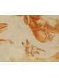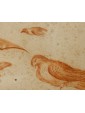 The sanguigna is a red ocher used to create drawing pastels, particularly popular in the Renaissance and Baroque period. The colour, similar to that of blood, is due to the material of which it is composed, namely hematite, having a ferrous composition. The hematite mixture is shaped into pointed sticks with which you can mark on paper. Often the mixture is enriched with small amounts of ocher. The sanguine, in graphic techniques, can be used as a common graphite pencil, using the hatching to simulate the parts in shadow of a model and leaving clean the surface of the sheet for those in light. Or the technique of the shading can be used in which, using a rag, the artist spreads the dusty marks left on the sheet by the blood until the tone of the entire surface is lowered, then resuming the work by removing the dust on the light points; For this operation, use bread crumb or soft gum. Often the two techniques of dyeing and shading are used in combination. In many ancient drawings the sanguine is used together with charcoal or black stone: a first sanguine sketch was made which was then taken up with the darker marks of coal or black stone. The lighter colour of the sanguine prevented that, when finished work, the first signs, often subject to reconsideration, could hinder the overall vision of the final version. In the 17th century, blood was often used on dyed sheets and in combination with the biacca or with the chalk, which were used to obtain lights, or sometimes it was used together with watercolor.