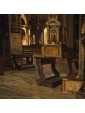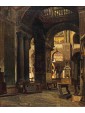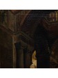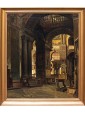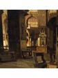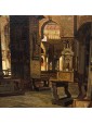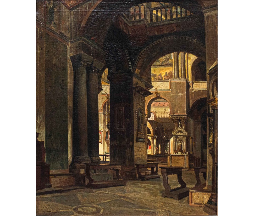 The Basilica, cathedral of the city, is not only the most important church in Venice but a symbol of the city and its secular history, as well as representing one of the highest points in the history of western architecture, United, for its Venetian mercantile position and its marked internationality, to oriental influences. The history of the Basilica of San Marco begins in 828 when the eleventh doge, Giustiniano Partecipazio, decided to build a church next to the ducal palace, in honor of San Marco, replacing the palatine chapel dedicated to San Teodoro. The fire caused by some rioters in 976 destroyed the building, so in 978 it was rebuilt by the doge. The present structure dates back to the 11th century. It was started by the doge Domenico Contarini in 1063, carried on by his successor Domenico Selvo and consecrated in 1094. After a fire in 1231 and further renovation work the basilica was completed only in 1617. For the succession of works and the mixture of influences present it is difficult to define a style but it is necessary to consider the different influences, Romanesque, Gothic and Byzantine, here, not placed in antithesis but inserted in a cultural koinè, with an exceptional result. The structure of the church is defined on a plan with a Greek cross with five domes distributed in the center and along the axes of the cross, from the construction in perforated bricks, light, not to burden weight on the ground of the lagoon, connected by vaults barrel. The aisles, three per arm, are divided by colonnades that converge towards the massive pillars supporting the domes; they are not made as a single block of masonry but articulated in turn like the main module: four supports at the vertices of a square. The canvas under examination manages to capture with skill and deep analytical attention the main elements of the basilica defining its structure as the pictorial decoration, allowing us, even more than a photo, to admire the basilica with the eyes of a visitor from the 19th century. The hand of the painter, fascinated and impressed, as we are today by the grandeur of the basilica and the quality of its decoration, observes with careful eyes every detail, returning to the canvas a subject of timeless charm, cared for in every detail, able to convey the atmospheric sensation of light i San Marco, dim, delicate, in contrast with the gold of the mosaics. The presence of some visitors, friars or people in prayer enriches and enlivens the work, leaving an image of everyday life of the most famous monument of the city of Venice.