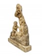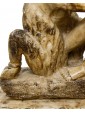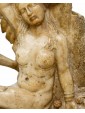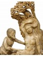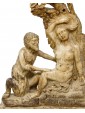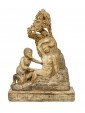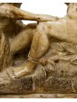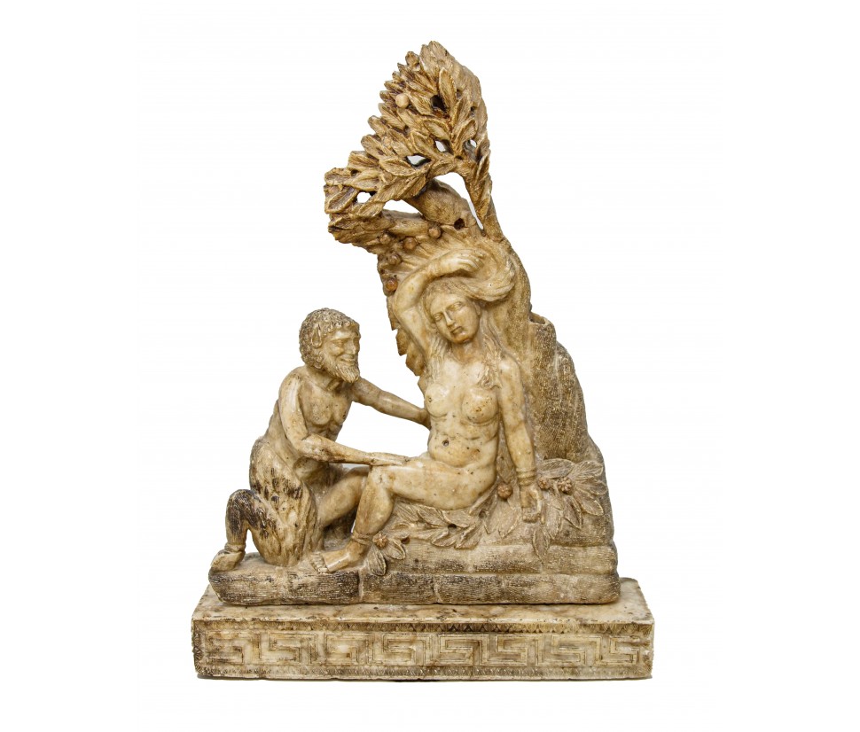 This small alabaster is structured in two parts: the base, decorated with a meander frieze between two frames of plant motifs, and the two figures of the satyr and the menade above. In ancient mythology these two figures were closely related to the god Dionysus: the menads were women invaded by the life force of the god of intoxication, of which they were precisely followers, Whereas the satyr was a minor deity linked to the forest universe and usually associated with Dionysus or the god Pan. The animal aspect of the latter is immediately noticeable by observing the clogs, the fleece of the legs up to the goat’s ears. Its ferino appearance contrasts with the beauty of the menade, lying under the leaves of a tree from whose leaves it has made a temporary bed; the relaxed lasciviousness with which it gently abandons itself on the trunk is perfectly highlighted in the gesture of adjusting the crown as well as in the left arm loosely resting on the leaves. The variety in surface treatment is surprising: thinly grooved in bricks and trunk, more prominent in the details of hair and hair and extraordinarily smooth along the contours of the bodies. We must also note the small details of the flowers and fruits masterfully set into the composition so as to appear part of the same fragment of alabaster. The material lends itself well to this variety and enhances the work in all its details, both through the bright, shimmering reflection like a pictorial chiaroscuro, and through the different natural shades of stone. Being in seventeenth century Sicily, probably in the area of Trapani, it is natural to think about the names of the great artists of the Sicilian baroque style developed parallel to the Roman one so that many architects, sculptors and painters of the island were trained in Rome. The artisan tradition and the decorative vein of the Sicilian shops were associated very well with the baroque architecture, for its nature richly decorated by sculptures, stuccos, friezes and reliefs. Francesco Ferrigno (1686 -1766), originally from Trapani, the members of the Serpotta family or Ignazio Francesco Marabitti (1719 -1797) are just some of the sculptors who can be mentioned for having coordinates regarding the kind of production in which to make the work.