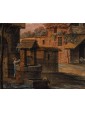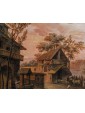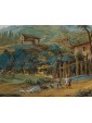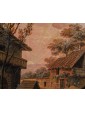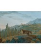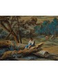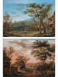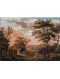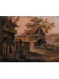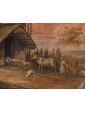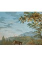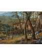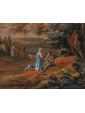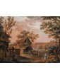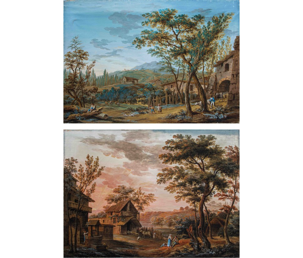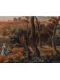 This pair of bucolic landscapes portrays two glimpses of the Italic countryside at two different times of the day is associated as well as for the subject also for the signature affixed on both canvases, De Raelietti, and for the arrangement of trees in the foreground that seem to open the bucolic scene, which continues to get lost on the horizon between forest patches and gentle hills. The tempera technique is also the same: the layers of color are superimposed with a more evident and concrete materiality, resulting in an optimal rendering of the details especially of the plant elements, where the wide range of colors is spread out through a point-like and delicate brush. The peasant environment is revealed through the small figures, human and animal, that roam near picturesque farmhouses immersed in the countryside; the contexts are similar to the point that they seem to be part of the same place but according to different perspectives and moments: One facing the mountains, the other towards the plain, the first at dusk, with the sky ignited by the last rays of the sun, the second at dawn, illuminated by a brighter and colder light. Another clue is given by the animals: brought to the stable at the end of the day and let you go out from the farmhouses in the second view. Environment, costumes, pictorial style and choice of subject make the two canvases associate to the nineteenth century.