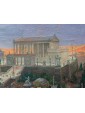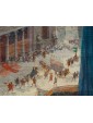 In fact, the panorama pictured is a view of ancient Rome at the time of the triumph of the emperor Constantine in 312 d.c. The clever quote refers to a famous work by Joseph Bühlmann (1844 to 1921) and Alexander Wagner (1838 - 1919): the "Das Alte Rom mit dem Triumphzuge Kaiser Constantins im Jahre 312" or, better, Ancient Rome with the triumph of the emperor Constantine in 312 published in Monaco in 1892. This is a reconstruction project of the times of ancient Rome made on a laporello (book or booklet that opens to accordion) originally 1.76 cm long (composed of 22 sheets and 8 photographs) Now no longer visible in original but whose children are preserved original projects in the library of the University of Munich. Pictured is the great temple of Giova Capitolino with behind it the theater of Marcello. The building on the right was the entrance to the Tabularium. All in the distance are the buildings of the forum.