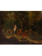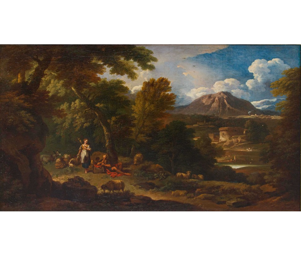 The canvas in question is part of the vast artistic corpus of the painter Carlo Antonio Tavella (Milan, 1668 - Genoa, 1738), considered one of the most prolific artists of the Baroque period especially in Genoa, the city that saw him most active. Born in 1668 in Milan from a couple of Genoese merchants, Tavella began his first training at the studio of Giuseppe Merati, where he stayed for about three years, landing in 1681 in the well-known workshop of the landscape painter Jan van Grevenbroeck called the Solfarolo, where he remained until the age of twenty-one years (1689) and where he had the opportunity to practice in copying and drawing, especially for what concerned landscapes and villages on fire, specialty of the master. In the same years the artist undertook a series of trips between Lombardy, Bologna, Florence, Pisa and Livorno, which led him to the knowledge of the works and the pictorial languages of Gaspard Dughet, Salvator Rosa and Giovanni Benedetto Castiglione, from which he assimilated elaborate scenographic compositions and an excellent rendering of the atmospheres and the relative changes of light. It was probably the constant contact with the Tuscan environment that allowed Tavella to be updated on Roman proposals, as evidenced by some drawings kept at the Cabinet of Drawings and Prints of Palazzo Rosso in Genoa, seeing that in all probability the artist never stayed in the capital: the relations with the landscape painters of Roman culture active at the court of Ferdinando de' Medici, among which Crescenzo Onofri, student and collaborator in Rome di Dughet, and the direct view of the cycle of frescoes with a landscape subject, created by Pandolfo Reschi in the loggia of the villa della Petraia in Florence, represented a fundamental stage in the artist’s continuous training. After a very short return to Milan, in 1690 the decisive move took place to Genoa (interspersed with short trips to Milan, Bergamo and Brescia), where he was immediately confronted with the production of the Dutch painter Pieter Mulier II called the Cavalier Tempesta, of which he was a favorite student, and to complete important commissions such as the decoration with frescoed landscapes of the hall of Liberal Arts in the current Palazzo Rosso (inspired by the taste of those made by Mulier himself in the Palazzo di Nicolosio Lomellino in Genoa). In the capital of Liguria, Tavella started a vast production of landscape paintings for the local nobility and for clients from Lombardy, Piedmont and abroad, introducing in his views figures of saints, Shepherds, farmers and washerwomen borrowed from sheets of repertoire provided by Paolo Gerolamo Piola and Alessandro Magnasco. Of considerable artistic value are the various landscapes with figures preserved in Palazzo Bianco, the landscapes with saints today at the Linguistics Academy of Fine Arts of Genoa or still the canvases exhibited at the Palazzo Durazzo Pallavicini in Genoa or at the Accademia Carrara in Bergamo, that share with our canvas a subtle and dynamic brushstroke, accompanied by a distinctive color palette, oriented towards pastel tones and modulated on the contrast between light and shadow. Precisely the skill in atmospheric description contributed to infuse his landscapes, imitating the classic Roman and typical of French painting, a unique depth and vivacity, giving the space effective suggestive and refined. Tavella died in Genoa on 2 December 1738 and was buried in the church of S. Domenico. Biographer Carlo Giuseppe Ratti remembers the daughters Angiola and Teresa, who followed in their father’s footsteps becoming well-known painters, as well as the best student of his workshop, Niccolò Micone, who became known by the nickname "Lo Zoppo".