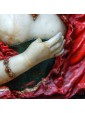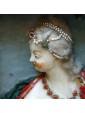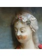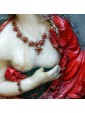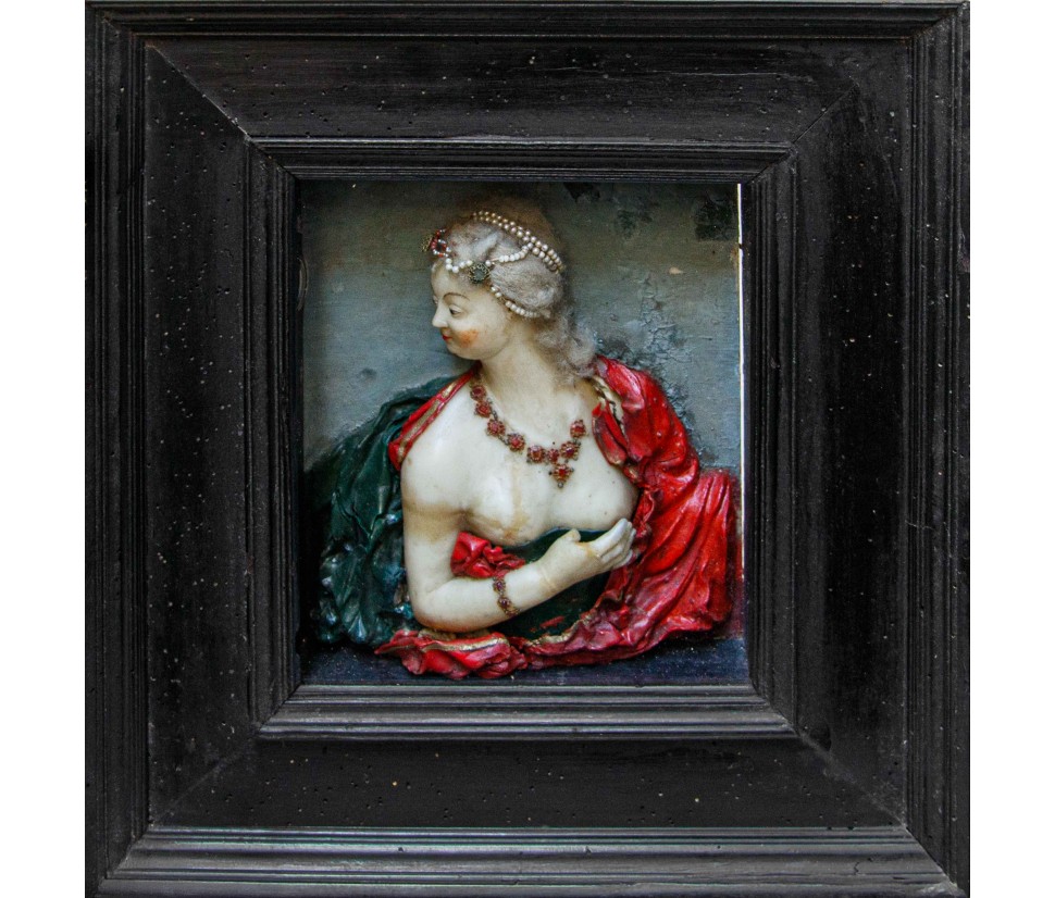 The use of making wax figures was very common, since ancient times, among the Greeks and Romans, and, as far as we have less evidence, also among the Egyptians and the peoples of Asia. In the Middle Ages and in modern times, wax was used by sculptors to model figures or objects to be melted into metal, to sketch works to be developed then in larger proportions, finally as a real sculptural material to melt or mold figures all round or bas-reliefs. Many wax sketches have been preserved, including by famous artists: Michelangelo, the David (Florence, Galleria Buonarroti) and several other figures, the Cellini’s Perseo (Florence, National Bargello Museum), that of Hercules and Caco by Baccio Bandinelli (Berlin, Kaiser Friedrich Museum), those of Ferdinand I de' Medici (Berlin, Kaiser Friedrich Museum) and two reliefs of the Passion of Giambologna (London, Victoria and Albert Museum). As a real sculptural material, the wax was mainly used for portraits, both for funerary figures that were exhibited during the honors given to the remains of kings or other illustrious people, and votive figures, and finally for real portraits. The use of funerary figures in colored wax and covered with sumptuous vestments is attested at least since the middle of the fourteenth century, to the courts of France and England, and also to the republic of Venice: Eleven of those figures are still preserved in Westminster Abbey, and the head of the doge Alvise IV Mocenigo is kept in the treasury of San Rocco in Venice.With the sixteenth century, ceroplastica also produces works independent of votive or funerary meaning and are frequent especially the medallion-portrait, especially of Italian artists, such as Cellini, Leone Leoni, Alfonso Lombardi, the Pastorino da Siena, Francesco Segala, l'Abondio, who had great fame even in the realities of beyond the Alps. It is precisely to this last case of use of wax in the artistic field that this artifact is attributable. The ceroplasty gives life to a fascinating female bust, shaping the unusual material. The woman portrayed, with elaborate hairstyle and refined jewelry, shows sensually both breasts: her body appears only partially covered by a red drape, whose silky texture is rendered with skill and abundance of details.