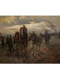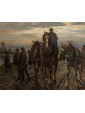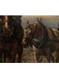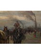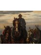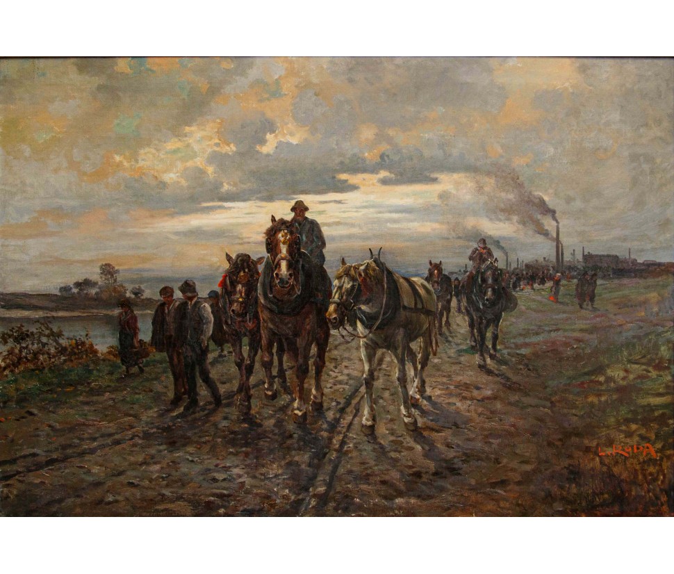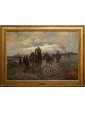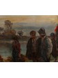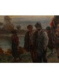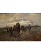 The canvas presented here, entitled A day finished, showing a group of farmers on horseback intent to return after a hard day of work in the fields while in the background stand the smoky chimneys symbol of the new industrialized city that advances, can be compared iconographically and ideologically with Il Quarto Stato by Giuseppe Pellizza da Volpedo (1901, Galleria d'Arte Moderna di Milano), thus representing a real social and political manifesto, An icon of the peasant and working class of the late nineteenth and early twentieth century. Italy at the turn of the century was, in fact, a country crossed by deep social and economic transformations. Industrialization, although still limited to some areas, had created an urban proletariat in often miserable conditions, with exhausting working hours and low wages. At the same time, in the countryside, masses of peasants were fighting against poverty and landlordism, while socialist and anarchist ideas spread rapidly, Fuelling strikes and demands for better living conditions and recognition of workers' rights. Roda, as well as Pelizza da Volpedo, deeply sensitive to the social issues of his time and influenced by socialist thought, felt the urgency to represent this nascent political and social force within this canvas, Evidence of an emerging new class of conscious workers. The composition of the painting is powerful and symbolic: the compact group of men and women who are advancing on horseback towards the viewer is flooded by a sunset light that symbolizes hope for a future of redemption. The faces are serious and determined, but not aggressive; there are no weapons or signs of violence, but only the strength of the number and awareness of a unit found.
