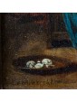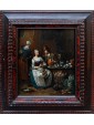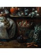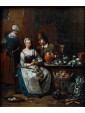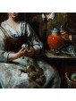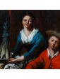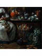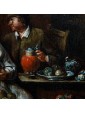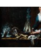 This work in particular reveals the mastery of Lambrechts in the rendering of luxurious fabrics and in the definition of almost portrait-like features. The observer is struck by the precision of the details, ranging from rustic terracotta jugs to the simple napkin resting on the table, to the delicate play of light that animates the surface of the glasses.