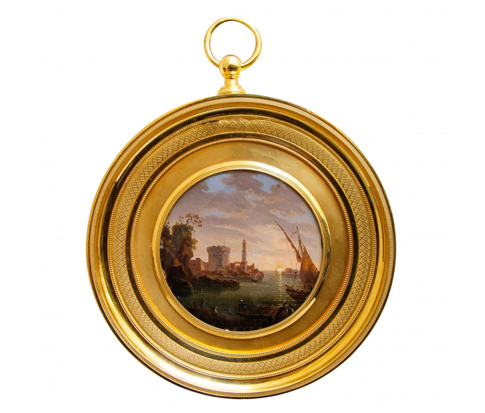 Giovan Battista dell'Acqua was born to a middle-class family in Milan on August 13, 1890; interested since his youth in the art of painting, he studied under the well-known Lombard landscape painter Giovanni Migliara, whose work had a remarkable impact on the artistic production of the young Milanese painter. Dell'Acqua, having reached artistic maturity, presented his works on several occasions at the main exhibition events in Lombardy of the nineteenth century: he participated, for example, to the promoter of Brera of 1824, presenting two works of small format but exemplary technical expertise, The underground of a cloister and Interior of a cave of a hermit. Throughout his career, the artist devoted himself mainly to the creation of small-format landscapes, representing picturesque views of his homeland, Lombardy (exemplified in this sense is a beautiful view of the Porta Romana ship, currently in private collection), but also panoramas admired during his numerous trips - the destinations of many of which were Naples and Venice - or fantasy scenarios. His works were a great success of public and were particularly appreciated by collectors of the nascent Milanese bourgeois class, despite the criticism attributed to him a certain amount of rigidity. This work perfectly summarizes all the key features of the artist’s production, such as the use of soft colors and the rendering of a faint moonlight. The artist represents a landscape of one of the destinations of his various trips, the port of Split.