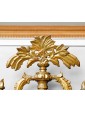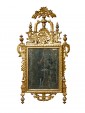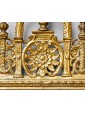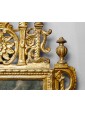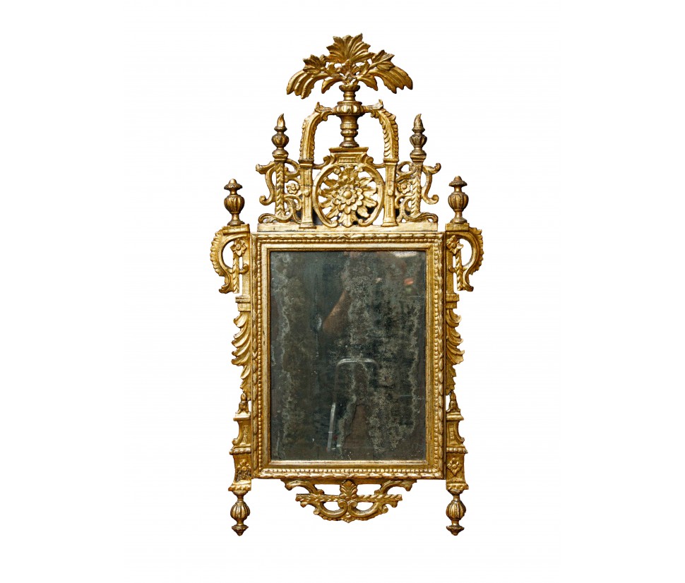 This refined mirror, a masterpiece of 18th-century Neapolitan cabinet making, embodies the elegance and majesty of the Louis XVI style. The frame, richly carved and gilded, has a harmonious and symmetrical design, characterized by floral and foliacal patterns that are interlaced with taste. In the centre of the cimasa, a sculptural composition of great effect depicts a rich vow that culminates in a decorative element in the form of a stylized flower, symbol of refinement and opulence. The edges of the mirror are adorned with a series of small volutes and a delicate beaded border, which give the work an air of lightness and refinement. The uniform and brilliant golden patina enhances the beauty of the sculptures and gives the object an aura of preciousness.