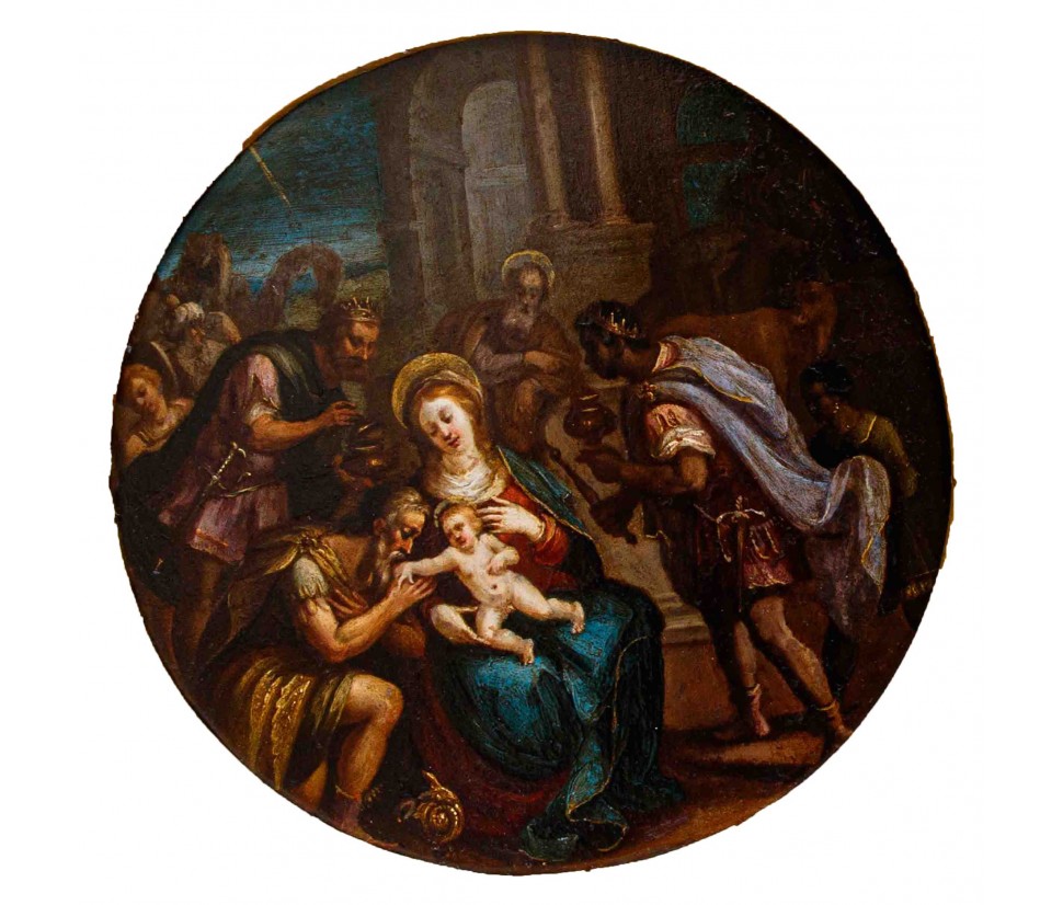 As mentioned in the engraving on the back of the copper, which identifies the present artist as "Fiamingo", it is possible to compare the painting with contemporary examples made by artists such as the eclectic Frans Francken the Younger (1581-1642) and Simon de Vos (1603-1676). The gentle and luminous world of Francken, reproduced in the plastered polishes of the painting in question, also occurs in the Adoration of the Magi performed by the Flemish and now kept at the Courtier Lodgings of the Royal Castle of Warsaw, as well as in the National Museum of the same city. Dean of the pictorial Guild of Saint Luke of the southern Dutch school from 1614, Francken specialized in small-format paintings becoming a leading model among Flemish artists; excelled in many fields, and became head of a flourishing workshop to which he joined, later, also his son Frans Francken III (1607-1667). A replica of the copper presented here is recently passed on the antique market, of not superb workmanship as the present one. The founder of the Francken influenced the works of contemporaries Pieter Paul Rubens, Jan Brueghel the Elder and David Teniers the Younger. Simon de Vos is approachable to the present, as well as for obvious formal assonance, for the reproduction of the exotic and swinging camel on the left side of the painting, in works now preserved in private collections. Note the figurative derivation of this camel with that performed in the volume Historiae animalium published in Zurich in two times, first between 1551-58, then in 1587, revolutionary encyclopedia of zoology curated by Conrad Gesner, lecturer at the Carolinum, then ancestor of the University of Zurich.