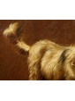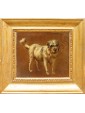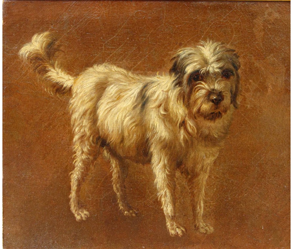 Francesco Londonio, born in Milan in 1723, was a prominent figure in the 18th-century Lombard artistic landscape, distinguished by his mastery in depicting pastoral scenes, landscapes, and, most notably, animals. His art, which fused naturalistic observation with Rococo taste and a Pre-Romantic sensibility, offers a fascinating insight into rural life and the culture of his time. Londonio’s artistic training was diverse and cosmopolitan. While sources do not always agree on the details of his early career—though he likely attended the workshop of the painter Ferdinando Porta in Milan—it is known that he spent a period in Rome during his youth. There, he studied the great masters of landscape painting and deepened his knowledge of classical art; this experience was fundamental to his stylistic development, enriching his work with new compositional and perspectival elements. During his formative years, he also stayed in Parma, where the works of Correggio left a profound impression, irreversibly shaping his visual vocabulary. In his youth, the artist also studied engraving alongside the acclaimed Lombard master Benigno Bossi, achieving significant results in this medium as well. Londonio’s first definitive work is a life drawing, A Bull and a Resting Cow, dated 1753 and held in the Biblioteca Ambrosiana in Milan. His first signed painting, Cattle Market, dates to 1756 and is currently in a private Milanese collection. Londonio focused primarily on animal painting and rural scenes, frequently depicting shepherds and livestock. What most distinguishes the Milanese painter’s output is his extraordinary ability to portray animals. Goats, sheep, cows, and donkeys, as well as dogs and birds, come to life on his canvases with surprising verisimilitude and vivacity. His style is characterized by a refined approach to pastoral subjects, drawing inspiration from the art of Giovan Battista Castiglione (known as Il Grechetto) and the Flemish masters active in Italy between the 17th and 18th centuries, including Philipp Peter Roos, primarily known as Rosa da Tivoli. Londonio did not limit himself to mere reproduction; he succeeded in capturing the essence and character of each species, often placing them in rural contexts that enhanced their presence. His pastoral scenes, frequently animated by shepherds, peasants, and travelers, reflect an idealized Arcadia that remains firmly anchored in the profound observation of the Lombard countryside. Many of his etchings reproduce animal studies or genre scenes, demonstrating his continuous research and attention to detail. Although primarily renowned for his animalier painting, Londonio also produced several still lifes and portraits of prominent figures in contemporary Lombardy. His work gained significant recognition, and he was appointed stage designer for the newly established Teatro alla Scala in Milan by Empress Maria Theresa of Austria, likely due to his celebrated work on the nativity scene (presepe) in the Church of San Marco. Londonio died in Milan on December 26, 1783, and was buried in his parish of Santa Eufemia. A series of his etchings featuring animal studies was published posthumously by Prince Alberico Barbiano di Belgioioso d'Este, ensuring his extraordinary critical and visual legacy in the period following his death. Although he did not lead a formal school, he had numerous imitators and followers, which occasionally leads to challenges in attribution. Londonio left a significant artistic legacy in Milan. Today, his works are preserved in major museums and private collections, particularly in Lombardy, where they remain a precious testament to 18th-century taste and culture. This painting, which aligns closely with Francesco Londonio’s production through its iconographic and stylistic characteristics, depicts a dog with long, wiry, light-colored fur and darker, almost black markings that create a variegated effect, particularly on the head and back. The dog is shown in full figure, in an upright and slightly frontal pose, with its gaze directed toward the viewer, suggesting an alert and lively expression. Its tail is high and bushy, curled over its back. The fur is rendered with great attention to detail, highlighting its voluminous and shaggy texture, typical of a terrier breed or a crossbreed with similar traits. The background is a uniform, dark, deep brown that emphasizes the dog’s light-colored figure. This type of neutral background is common in Londonio's work, as it allows focus to remain on the animal, the true protagonist of the scene. The lighting originates from the left, creating soft shadows and highlighting the three-dimensionality of the subject. The brushwork, while detailed in the rendering of the fur, retains a certain freedom typical of the 18th century and of Londonio’s manner, which favored a naturalistic rather than pedantic depiction of animals. Through its attention to zoological detail and its simple yet effective composition, the work aligns perfectly with the style and themes favored by Francesco Londonio, celebrated for his ability to capture the very essence and vitality of animals.