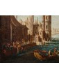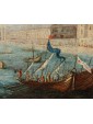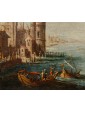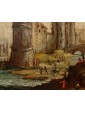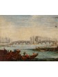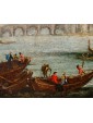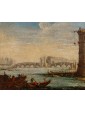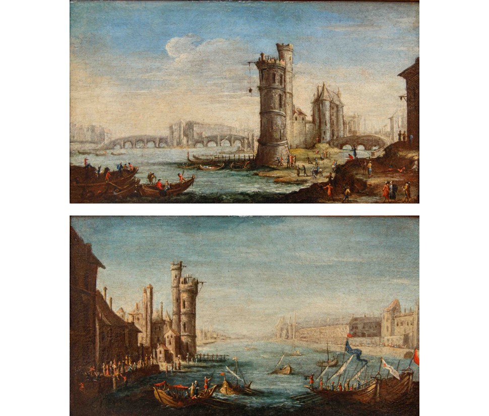 The pair of canvases under examination is derived from the Two Great Views of Paris, etched by the French engraver Jacques Callot (Nancy, 1592–1635) between approximately 1628 and 1630. These works represent some of the most significant achievements of his Parisian period. Indeed, they constitute a unique technical and compositional feat, remaining of paramount historical and artistic importance today. The vistas immortalized by Callot—a View of the Louvre (left) and a View of the Pont Neuf (right)—depict the city as it appeared in the early decades of the 17th century. Consequently, they serve not merely as decorative scenes, but as authentic visual and topographical records. A striking feature is the sophisticated use of aerial perspective, achieved through the modulation of the etched line. In the Vue du Louvre, Callot delineates the foreground architecture with forceful, dense strokes, making them appear sharp and dark. As the viewer’s eye moves toward the River Seine and the background, the lines become finer and more delicate. This tonal graduation not only suggests atmospheric distance but also imparts a nearly three-dimensional spatial depth, a technique that foreshadows the methods of later vedutisti. The first canvas presents a view looking westward along the Seine from the Right Bank. The dominant foreground element is the Great Tower of Nesle, a circular, crenelated structure that stood on the Left Bank at the edge of what is now the Pont des Arts. Famous for its history and royal scandals, this tower exemplifies the historical value of these views: it was demolished between 1663 and 1665 to make way for the Collège des Quatre-Nations (now the Institut de France). Thus, this painting—and Callot’s original etching—stand as crucial documents of the tower's exact physiognomy and location. In the distance, across the river, the elongated silhouette of the Louvre is visible. The water is animated by cargo boats and figures in period costume, lending the scene the characteristic vivacity for which Callot was renowned in his depictions of street life. The second work offers a complementary perspective, focusing on the heart of Paris. Although the Tower of Nesle again appears in the foreground, the view extends to capture the Pont Neuf and the skyline of the Île de la Cité in the middle distance. While the bridge had only recently been completed at the start of the 17th century, it was already a bustling hub of commercial activity. Attention is once again drawn to the details of river life, featuring boats apparently used for passenger transport or leisure, distinguished by their vibrant red and blue drapery. The transition from Callot’s engravings to the oil paintings presented here is more than a mere change of medium; it confirms the widespread influence and importance of the French artist’s models. Callot utilized etching to ensure the widest possible circulation of his visual "news" (today, his prints are held in the print rooms of the world’s most prestigious institutions, including the MET in New York, the Louvre and Musée Carnavalet in Paris, and the Accademia Carrara in Bergamo).