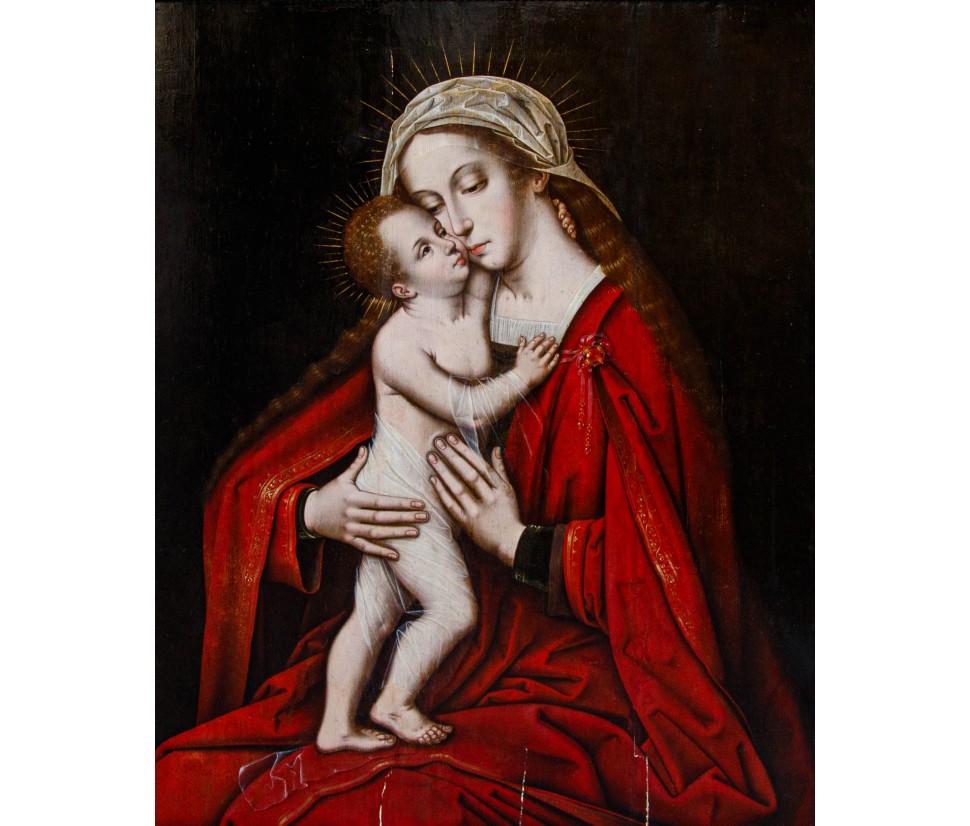 A leading figure among the Flemish Masters of the 16th century, Benson was able to harmoniously combine the rich tradition of Northern Europe with innovative Italian trends. Trained at the Bruges School, he inherited the elegance and refinement of the Flemish Primitives, in particular of Van Eyck and Van der Weyden. However, also his Lombard origins are manifest in his paintings, bringing a brightness and a more dynamic composition, typical of the Italian Renaissance. The triangular composition and the skillful use of colour, with the warm brown tones contrasting with the delicate skin tones, are a clear example of such stylistic synthesis.