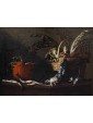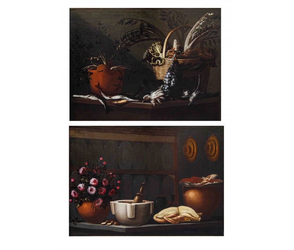 The iconographic comparison with the three canvases preserved at the Museo Stefano Bardini in Florence—previously attributed to Nicola Levoli and featuring fish, plucked turkeys, and mortars—is compelling. However, the works examined here reveal a different quality in the pictorial matter, which is smoother and more compact, along with a greater clarity in spatial construction; these elements support the attribution to Soardi. His activity, documented from at least 1787 and attested by his participation in the exhibitions of the Accademia di Belle Arti in Ravenna in 1835 and 1837, finds a firm stylistic anchor in eight canvases in a private collection in Fano (one of which is signed and dated 1810). Those works display a visual language entirely consistent with the pair examined here.