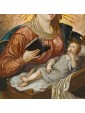 Conversely, the depiction of the Christ Child in a cradle is more characteristic of Northern Europe. This detail, quite unusual in Italian art, is frequently found in 17th-century Flemish paintings; a famous example is Rembrandt’s Holy Family with Angels in the Hermitage. Furthermore, the Virgin’s radiant sunburst halo connects the work to Spanish models from the late 16th century.
