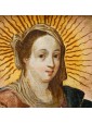 The iconography of the Virgin with the Book of Scriptures became widespread in the Florentine area as early as the late 15th century, as seen in Sandro Botticelli’s Madonna and Child Reading (Museo Poldi Pezzoli) and Giorgione’s Reading Madonna (Ashmolean Museum). From the 16th century onward, this motif spread to Spain, evidenced by works such as the painting by the Master of Santa Inés in the Museo Galdiano, Madrid.