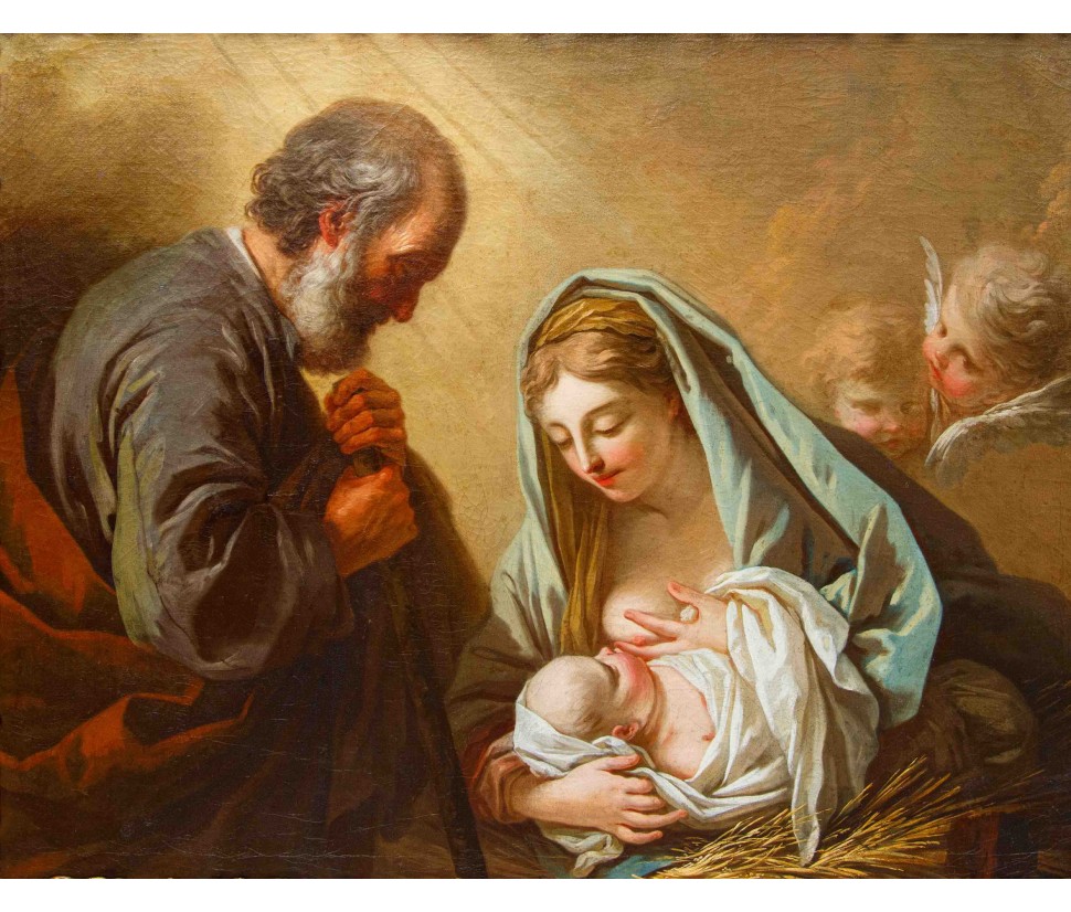This fine Madonna Lactans with Saint Joseph represents a significant document of the stylistic vibrancy that characterized Venetian painting between the late 17th and early 18th centuries—a crucial transitional period toward a clearer, more modern luminosity.