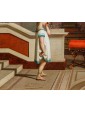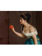 At the heart of the composition, a young girl in tears wipes her face—her features recalling the female figures in Sarri's works held at the Gallery of Modern Art in Florence and the Palazzo Pretorio in Livorno. She is overcome by a childish sorrow that seems to stem from an interrupted game, as suggested by the helmet and small sword abandoned carelessly on the marble floor. To counter this moment of distress, the mother intervenes—a matron of statuesque grace wrapped in a vibrant, intense blue peplos. Her gesture, offering an orange to distract the child from her weeping, exudes sweetness and maternal instinct, while a second child observes the scene with curiosity, clutching a "golden fruit" of his own.