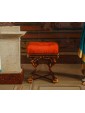 The background is dominated by complex wall decorations reminiscent of the "Fourth Pompeian Style," characterized by fantastical architectural perspectives and isolated figures on monochrome backgrounds. At the center of the wall, a floating female figure—perhaps a maenad or a winged Victory—stands out within a painted aedicule. This detail suggests a direct study of the decorative repertoires of the domus of Pompeii and Herculaneum, which were widely circulated at the time through engravings and illustrated catalogues. Even the precision of the furnishings, such as the stool with its red velvet cushion (a 19th-century reimagining of the sella curulis), allows Sarri to create a deliberate contrast between the grandeur of the context and the fragility of the human emotion depicted.