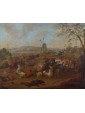 The painting in question, a refined small-format oil on panel, depicts a scene of a clash between knights which, in style, technique and compositional dynamism, can be traced back to the hand of Karel Breydel, the famous Flemish master known as the "Knight of Antwerp". The work fits perfectly into the vein of battle painting, a genre in which Breydel excelled, demonstrating a rare ability to combine the excitement of combat with the breadth and serenity of the Nordic landscape. The composition is divided into a foreground dominated by violent hand-to-hand combat: the rendering of the horses, captured in plastic poses and friezes, and the detail of the knights' uniforms highlight an executive competence that is specifically confirmed in the master's works preserved at the National Museum in Copenhagen. In particular, the physiognomy of the figures and the musculature of the animals reveal that stylistic signature that made Breydel one of the most sought-after interpreters of his time. Karel Breydel initially trained under Pieter Ykens and later Pieter Rysbrack, but his stylistic signature was profoundly influenced by his numerous travels in his youth. After staying in Italy and Germany, where he worked closely with his brother Frans at the court of Hasse-Kassel, Breydel settled in Amsterdam in 1703. Here he entered the City Guild and began to define his specialization as a battle painter. Although he began as a landscape painter, also influenced by his closeness to the Brueghel tradition, it was precisely the representation of cavalry attacks that decreed his international success. His works are often compared in spirit and compositional ingenuity to those of Adam Frans van der Meulen, the leading exponent of the genre in Antwerp in the 17th century, while maintaining an executive freshness and luminosity that recall Jan Griffier's views of the Rhine. In this panel, the artist demonstrates his ability to manage small spaces while infusing them with a monumental breath. The landscape, which slopes gently towards the horizon under a sky furrowed by vaporous clouds, serves as a stage for a masterful war choreography. Breydel's ability to combine the tension of the melee with the vastness of his surroundings is the hallmark of his pictorial maturity. This type of painting, highly appreciated by 18th-century collectors, is now the pride of prestigious museum institutions: in addition to the aforementioned Danish museum, similar works are exhibited at the Krannert Museum in Illinois and the Royal Museums of Fine Arts in Brussels. Ultimately, this Battle Scene with Knights represents a significant example of Karel Breydel's production, confirming his prominent position in the panorama of Flemish painting between the seventeenth and eighteenth centuries, capable of transforming a small wooden support into a window open to the vibrant and dramatic history of his time.